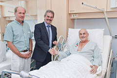 Prim. Univ.-Doz. Dr. Christoph Holzinger, Leiter der Herzchirurgie am Universitätsklinikum St. Pölten, und Landesrat Mag. Karl Wilfing mit dem 15.000sten Patienten. Foto: NLK Burchhart