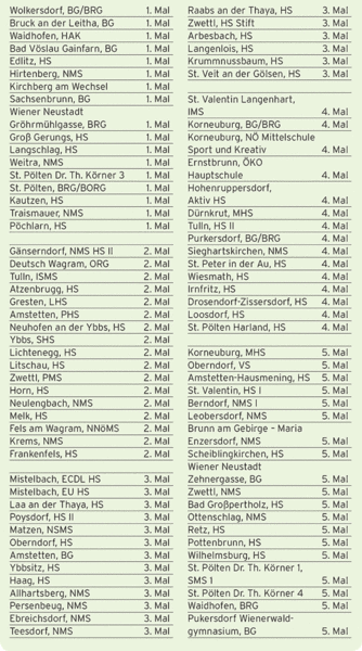 Ausgezeichnete »Gesunde Schulen« in NÖ: 87 »Gesunde Schulen« in NÖ erhielten am 24. Februar 2014 die Zertifizierung für das aktuelle Schuljahr: Sie alle kümmern sich um ein gesundheitsförderndes Umfeld, in dem sich alle Beteiligten wohl fühlen. Wichtiges Thema heuer: Beziehungen – zwischen Schülerinnen und Schülern, zwischen ihnen und den Lehrkräften, zu den Eltern und zur Schulleitung. Mag. Alexandra Benn-Ibler, bei der Initiative »Tut gut!« zuständig für die Schulen: „All diese Beziehungen stellen eine große fördernde Ressource dar, können aber auch belastend sein. Wir wollen alle Beteiligten durch verschiedene Impulse, wie etwa den »Gesunde Schulen«-Tag, dabei unterstützen, Beziehungen als Unterstützung und Reichtum erleben zu können.“