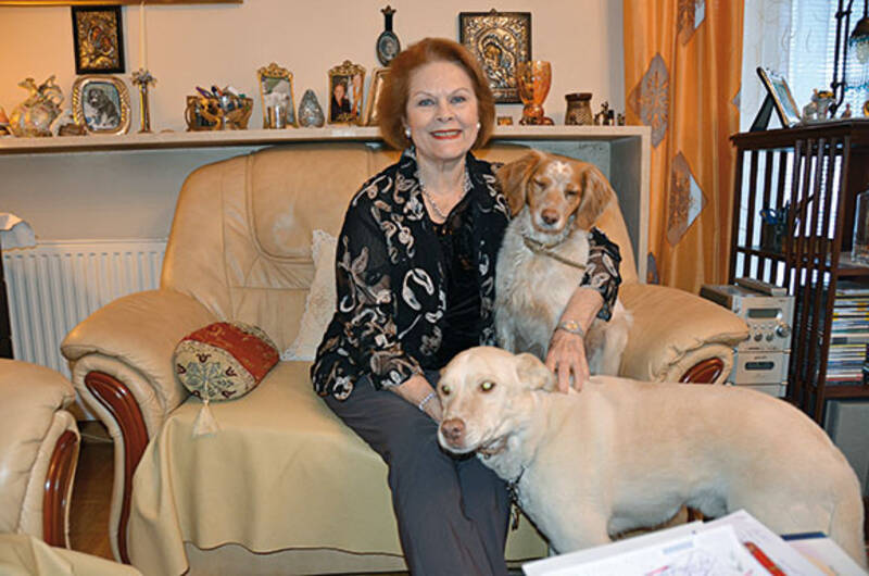 Gabriele Jacoby lebt in Baden im Haus ihrer Mutter. Heute hat sie nur mehr zwei Hunde, im Bild mit Manual und Spiros. „Mein ganzes Leben dreht sich um die Hunde“, gesteht die Tierliebhaberin. Foto: Sandra Sagmeister-Pensch