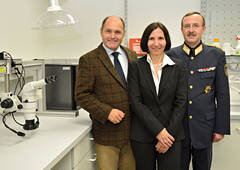 (v.l.) LH-Stv. Mag. Wolfgang Sobotka, Dr. Christa Nussbaumer, Leiterin DNA-Labor Mödling, und Landespolizeidirektor Hofrat Dr. Franz Prucher