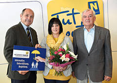 (v.l.) Landeshauptmann-Stv. Wolfgang Sobotka, Sabine Holzinger (Familienbegleiterin „Netzwerk Familie“ der Initiative »Tut gut!«) und Dr. Ernst Tatzer, Kinderarzt und Kinderpsychiater. FOTO: NLK Filzwieser