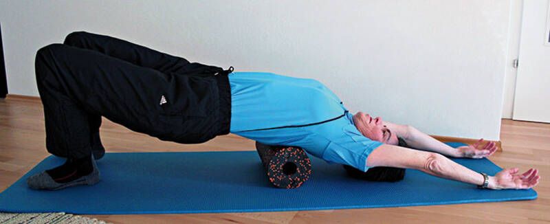Dann wage ich mich an meine Problemzone. Ich setze mich auf die Blackroll und rolle langsam auf den Rücken zurück. Ein lautes Knacksen lässt mich kurz zusammenzucken. Was war das? Wohl nichts Schlimmes, denn ich spüre keinen Schmerz. Im Gegenteil. Es fühlt sich einfach nur angenehm an. Also rolle ich fleißig weiter und merke deutlich, wie sich die extrem verspannte Region mehr und mehr lockert. Ein Moment, den man am liebsten ewig genießen möchte.