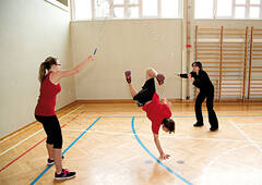 Die 48-Jährige trainiert neben ihren Kinder- und Jugendgruppen auch eine „Oldies“-Gruppe, deren Teilnehmer zwischen 20 und 50 Jahre alt sind, und in der sie auch selbst mitmacht. „Ich habe erst mit 30 Jahren angefangen und schaffe trotzdem viele Tricks genauso gut wie meine Schüler. Schon als Kind zu beginnen ist also kein Muss. Wenn der Ehrgeiz geweckt ist, geht der Rest von selbst – der Suchtfaktor ist sehr hoch“, schmunzelt die Trainerin.