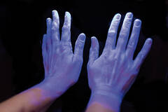 Eine der wichtigsten Maßnahmen im Kampf gegen Keim-Übertragungen ist ebenso simpel wie effizient: die richtige Händedesinfektion. Als Faustregel gilt: Eine Hohlhand voll Desinfektionsmittel gründlich, über mindestens 30 Sekunden in den Händen verreiben. Und das vor und nach jedem Patientenkontakt. In regelmäßigen Schulungen veranschaulicht das Team mit der Hygienebox, welche Stellen an den Händen unzureichend mit Desinfektionsmittel benetzt wurden (siehe Foto Seite 20). Das Gefährliche daran: Führt man die Händedesinfektion nicht korrekt und häufig genug durch, wird man selbst zum potentiellen Keim-Überträger – mit vielleicht schlimmen Konsequenzen für den Patienten. Ist man gesund, ist man gut gewappnet und infiziert sich nicht, aber kann als Transportmedium den Keim an jemanden mit schwachem Immunsystem übertragen.