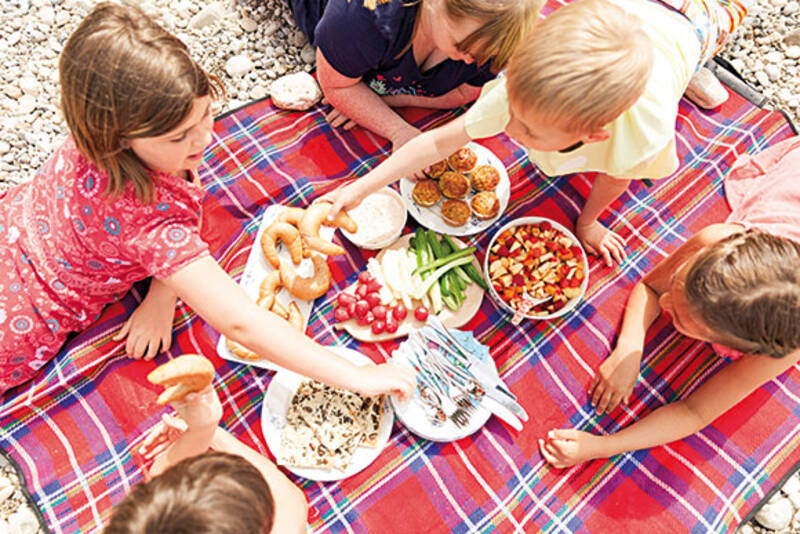 Eine Decke ausbreiten, darauf Teller und Schüsseln mit den verschiedensten Köstlichkeiten verteilen. Vor allem Kinder lieben diese unkomplizierte Art zu essen: Sie können hier mal einen Pizzamuffin stibitzen und dort mal schnell eine Karotte in den Kräutertopfen tunken – und dann gleich weitertoben. Und Sie? Liegen derweil entspannt auf den Rücken, schauen in den Himmel und betrachten die Wolken. Ein wunderbar entspannter und schöner Nachmittag mit der ganzen Familie.