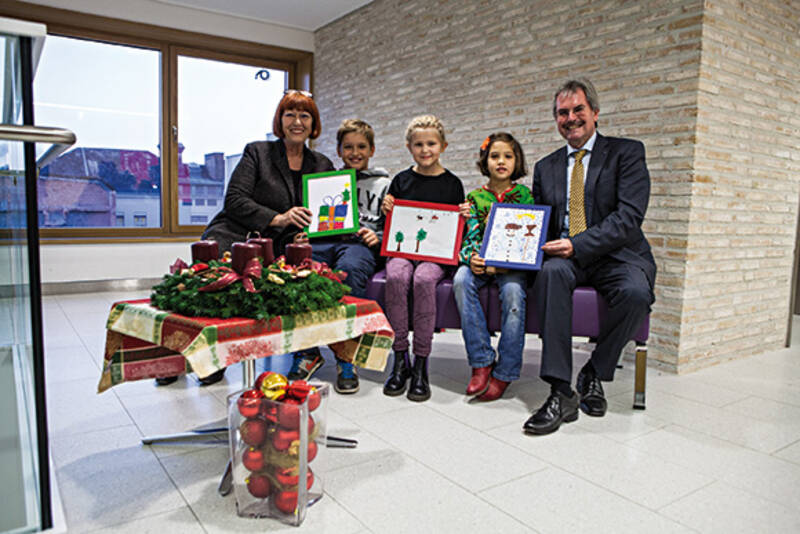 Gesucht waren Motive für die Karten der NÖ Landeskliniken-Holding. Landesrat Mag. Karl Wilfing überreichte den drei Gewinnern Thermengutscheine für die ganze Familie und Malutensilien. Die Gewinnermotive wurden von einer achtköpfigen Jury gewählt – darunter die Mödlinger Künstlerin Elisabeth Bunka-Peklar. Schlussendlich entschied sich die Jury für den Schneemann von Sophie Wacenovsky, das Geschenkspackerl von Richard Hackl und den Weihnachtsschlitten von Emma Meixner.