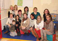 Spende für Sarah: (v.l.) Bettina Genser mit Sohn Maximilian, OÄ Dr. Birgit Scheicher (stv. Leiterin der Abteilung für Kinder- und Jugendheilkunde), Irene Baumgartner-Fahrner, die stolze Mutter mit der kleinen Sarah, DKKS Evelyne Peinsipp, Erika Buchinger, Gabriele Volk, DKKS Jennifer Bacher, Bettina Mittermann, OÄ Dr. Ursula Pürer und Herta Neusiedler. Foto: Felicitas Matern