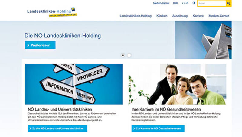 Die NÖ Landeskliniken-Holding informiert auf ihrer Internetseite nicht nur über die eigene Organisation, sondern auch über die heimischen Landes- und Universitätskliniken und die Gesundheits- und Krankenpflegeschulen.