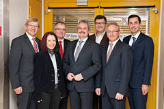 Über den neuen Operationssaal freuen sich (v.l.) Bürgermeister Herbert Schrittwieser, Regina Kern, MBA, MSc (Pflegerische Klinikleitung), Dipl. KH-BW und akad. gepr. KH-Manager Günther Suppan (interim. Kaufmännische Klinikleitung), Landesrat Mag. Karl Wilfing, Prim. Dr. Franz Pfeffel (Ärztliche Klinikleitung), Landtagsabgeordneter und Bürgermeister Karl Bader, Mag. Dr. Bernhard Kadlec (Kaufmännischer Direktor Universitätsklinikum St. Pölten-Lilienfeld).