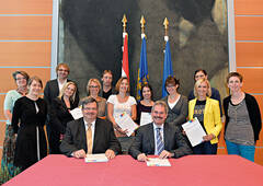 (v.l.) Irene Vasik, Veronika Reissert und Robert Eder (re:spect Jugendberatung Purkersdorf), Katrin Tamandl (auftrieb Jugend- und Suchtberatung Wiener Neustadt), Reinhard Neumayer (Abt. GS6, Land NÖ), Manuela Leoni (JUB Jugendberatung Krems), Herbert Aschauer (Jugendberatung Waggon Mödling), Michaela Unterberger (EXIT Jugendberatung Tulln), Sandra Ziegelwanger-Bravo Galarce (Jugendberatung AMPEL St. Pölten), Landesrat Mag. Karl Wilfing, Anja Schagerl (Jugendberatung AMPEL St. Pölten), Sabine Wolf und Sandra Metzner (Jugendberatung E.L.E.M.E.N.T.S. Berndorf), Bernadette Aigner (Jugendberatung JUSY Waidhofen/Ybbs)