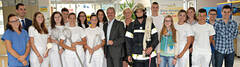 Hoher Besuch für die Ferialpraktikanten im Sommer 2015 im Universitätsklinikum St. Pölten: (v.l.) 1. Reihe: Lisa Strobl, Lena Prischink, Julia Mayrhofer, Natasa Kos, Dragana Dakic, Landesrat Mag. Karl Wilfing, Lukas Eibel, Anna Haas, Stefanie Hausmann, Christopher Ieremici, Bernhard Wurm. 2. Reihe: Mag. Dr. Bernhard Kadlec, Kaufmännischer Direktor am Universitätsklinikum St. Pölten, Johannes Badinger, Carolina Klaus, Zdravka Subotic, Regionalmanagerin Hon. Prof. (FH) Christa Stelzmüller, MAS, Daniel Mijatovic, Isabella Sauer, Moritz Gruber. FOTO: NLK Reinberger