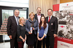 Soziales Engagement bewiesen: (v.l.) Willi Sauer (Präsident Rotes Kreuz NÖ), Marlene Dienstl (Schülerin BORG Neulengbach), Landesrätin Mag. Barbara Schwarz, Direktor Mag. Johannes Hiller (BORG Neulengbach), Victoria Moser (Schülerin BORG Neulengbach) und Landesgeschäftsführer DI Peter Kaiser (Rotes Kreuz NÖ). FOTO: M. Hechenberger