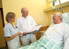 Nicht nur die enge Zusammenarbeit mit der Pflege ist ein Muss auf der Station, besonders die Behandlung von Krebskranken ist nur interdisziplinär möglich: „40 Prozent unserer Patienten haben eine bösartige Erkrankung. Da arbeiten wir mit vielen Abteilungen auf der Diagnoseseite zusammen, etwa mit dem Röntgen, Pathologie oder der Radiologie, für die Chemotherapie arbeiten wir mit der Hämato-Onkologie zusammen. Betroffene Patienten schicken wir entweder ins Landesklinikum Wiener Neustadt, ins Landesklinikum Krems oder in Kaiser-Franz-Josef-Spital nach Wien“, berichtet Albrecht. Bei Patientinnen mit Harnverlust gibt es auch eine Zusammenarbeit mit der Gynäkologie. Kinder mit urologischen Erkrankungen werden von uns ebenfalls betreut.