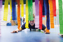 Unten durch und rundherum: Mit einem Rollbrett oder einer Decke wird ein Hindernisparcours zum Abenteuer. Foto: Gerald Lechner
