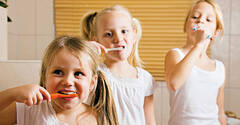 Nicht nur Eltern sind Vorbilder fürs tägliche Zähneputzen, sondern auch ältere Geschwister.