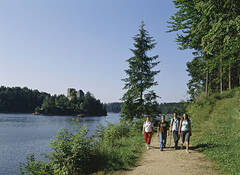 Tipp: Schloss Ottenstein mit mächtigen, schindelgedeckten Kegel- und Walmdächern und einer romanischen Burgkapelle mit monumentalen Gewölbefresken von 1170 (anmelden: Tel.: 02826/254).