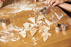 Teig kneten, ausstechen, naschen: Die langen Adventabende eignen sich ideal, um gemeinsam mit der Familie Kekse zu backen. Kinder haben einen großen Spaß am Treiben in der Küche. So wie Julius (8) und Adrian (5) aus St. Pölten. Gemeinsam mit Mama Elisabeth haben sie einige Rezepte ausprobiert (siehe nächste Seiten) – Kekse mit Gesundheitsbonus, aus Vollkornmehl oder mit Haferflocken, mit weniger Zucker und getrockneten Früchten. Denn es müssen nicht immer Kekse sein, die nichts als Kalorien liefern, den Blutzuckerspiegel durcheinander bringen und die Blutfettwerte in die Höhe schnellen lassen. Es geht auch anders – vollwertiger und genauso köstlich. Kekse aus hochwertigen und schmackhaften Zutaten – die Initiative »Tut gut!« hat einige Rezepte für Sie zusammengestellt. Die gesündere Variante schmeckt auch kleinen Naschkatzen. „Lecker“, sagt Julius, als er in den Haferflockenkeks beißt. Sein Bruder Adrian bevorzugt die Dinkelkekse, fährt mit dem Zeigefinger ins Marmeladeglas und schleckt ihn genüsslich ab, bevor er weiter Kekse füllt.